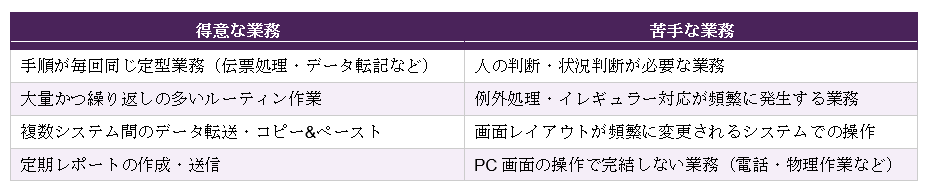 RPAが得意な業務・苦手な業務
