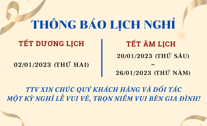 Thân gửi Quý Khách Hàng và Đối Tác, TTV xin thông báo lịch nghỉ cụ thể như sau: